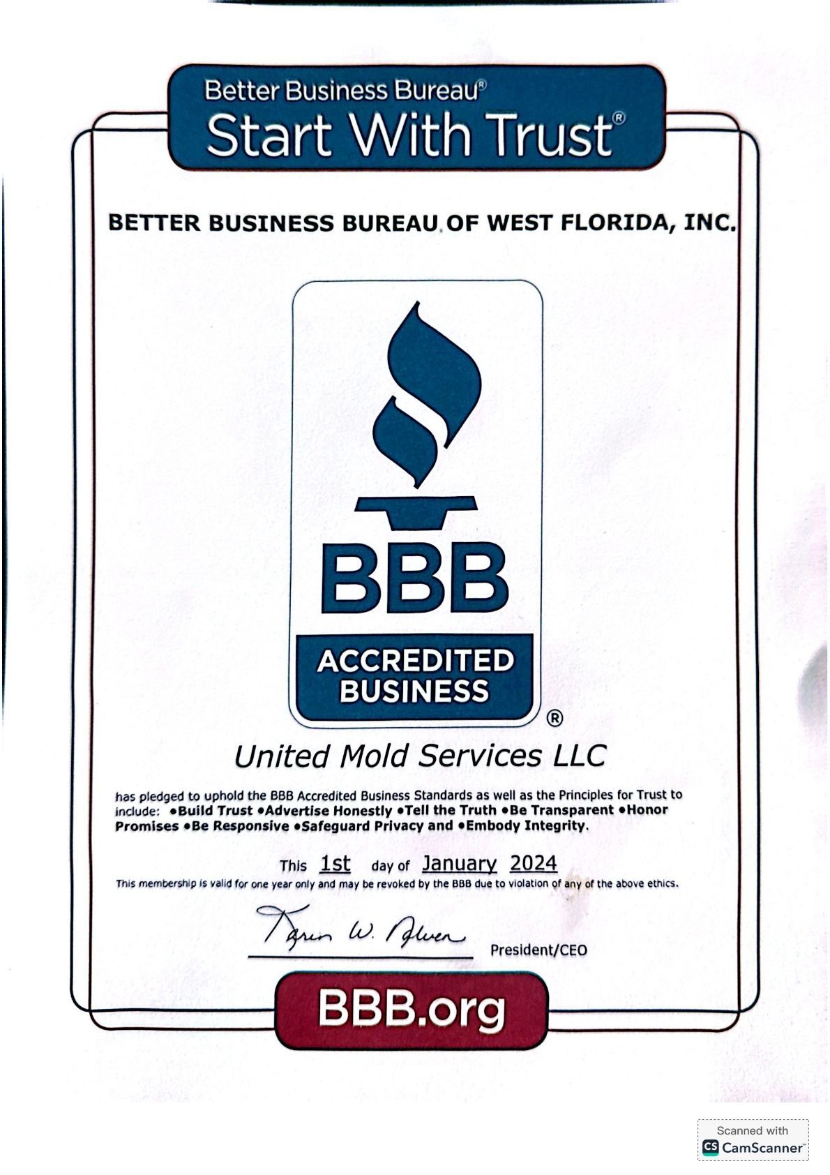 I highly recommend United Mold Services. I was completely impressed with their professionalism and the staff is not only friendly but also highly skilled. Nice Mold Inspection.